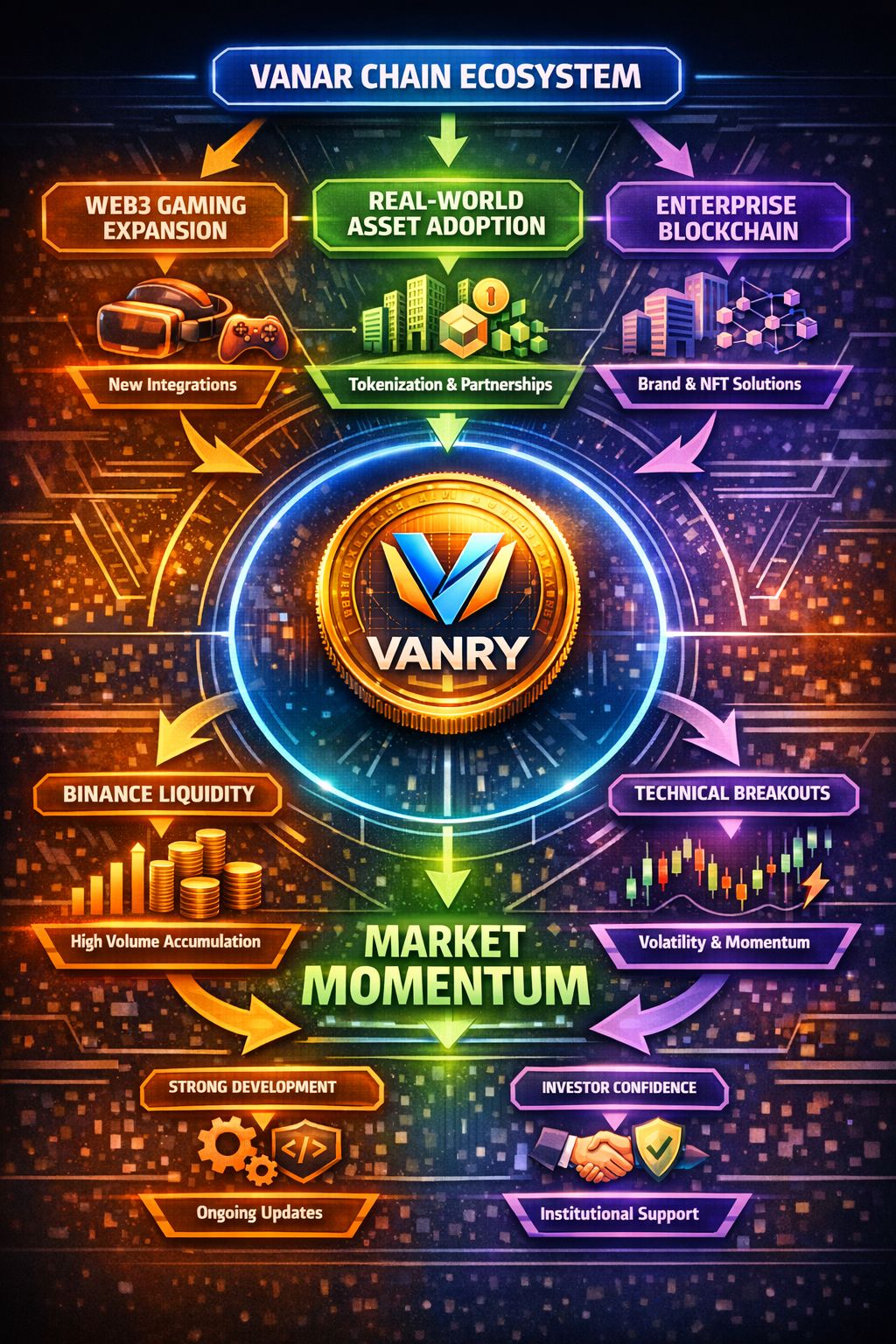 Another dimension influencing Vanar’s trajectory is enterprise blockchain adoption. As global brands explore tokenization, digital identity, immersive engagement, and blockchain-backed assets, infrastructure-ready chains gain speculative tailwinds. Vanar’s positioning within entertainment and brand integration gives it optionality and optionality in markets is priced at a premium during bullish expansions.