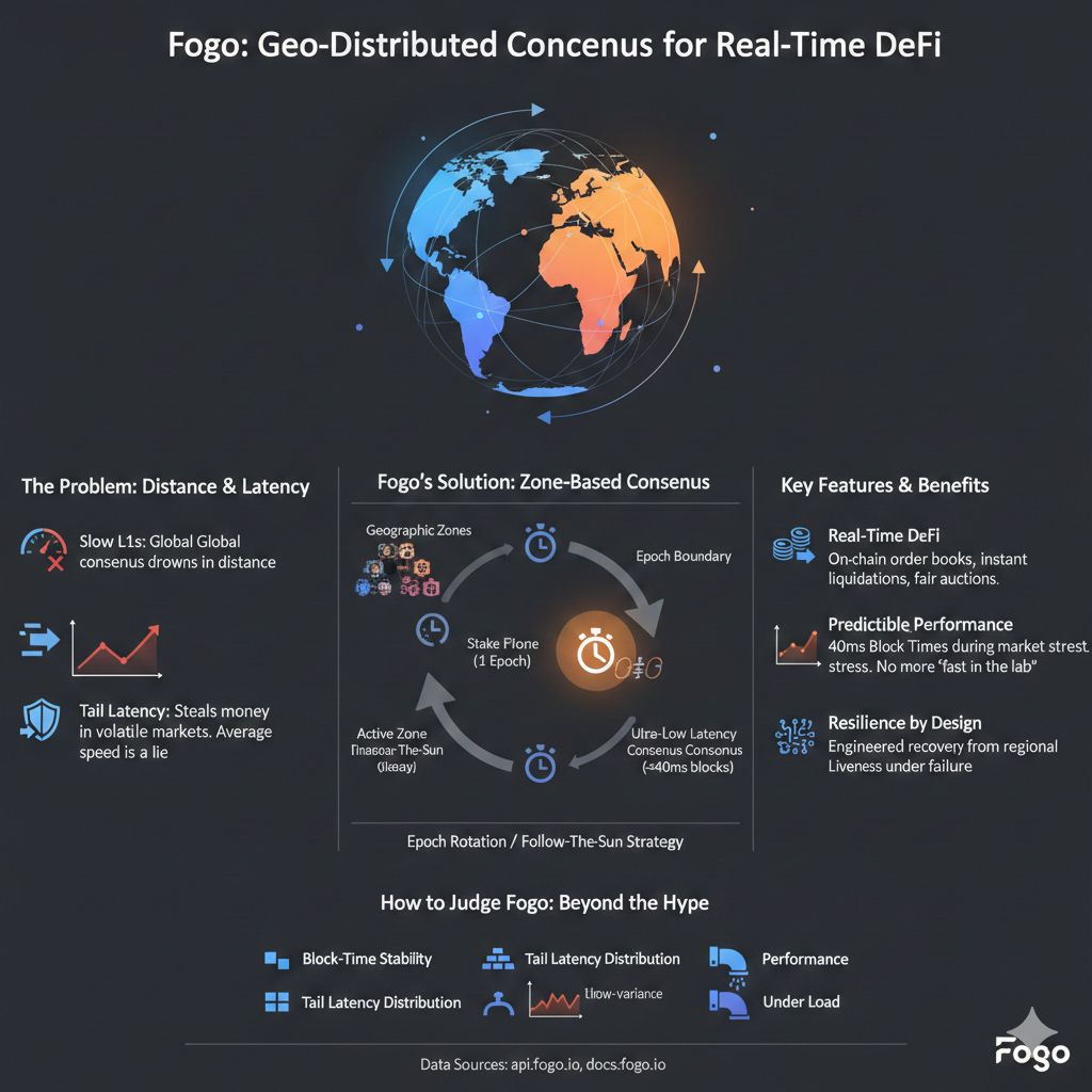 Don’t show me a peak TPS screenshot. Show me block-time stability during chaos. Show me tail latency distributions, not averages. Show me what happens when the market is on fire and memecoin mania is flooding the pipeline. If Fogo can keep 40ms blocks and predictable behavior under real load, then this stops being “another L1” and becomes something rarer: a chain that admitted the truth out loud. The ocean is part of your consensus algorithm, whether you like it or not. (docs.fogo.io)