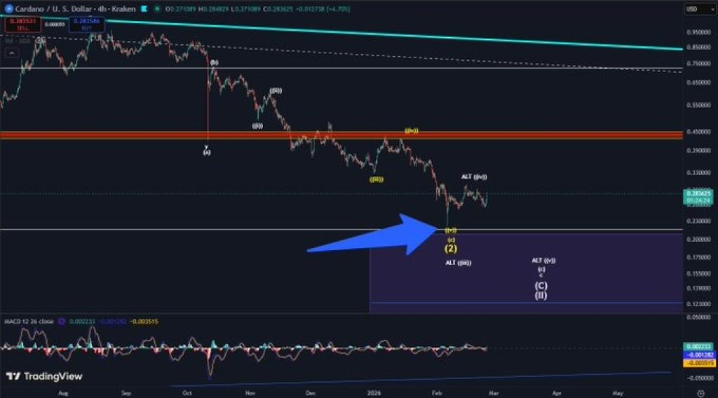 Le prix de Cardano a diminué pendant des mois maintenant. Depuis fin 2025, chaque rebond a culminé en dessous du précédent, et les vendeurs sont constamment intervenus avant qu'une véritable reprise ne puisse prendre forme. Mais il y a maintenant un argument croissant selon lequel le pire pourrait déjà être derrière nous.