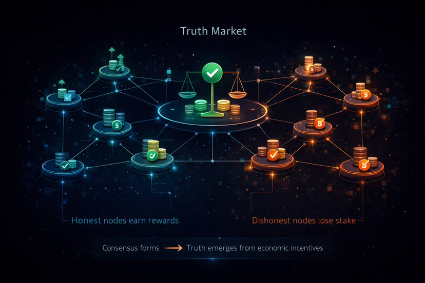 Participants stake value behind validations. If they support correct claims, they are rewarded. If they validate incorrect information, they lose stake.