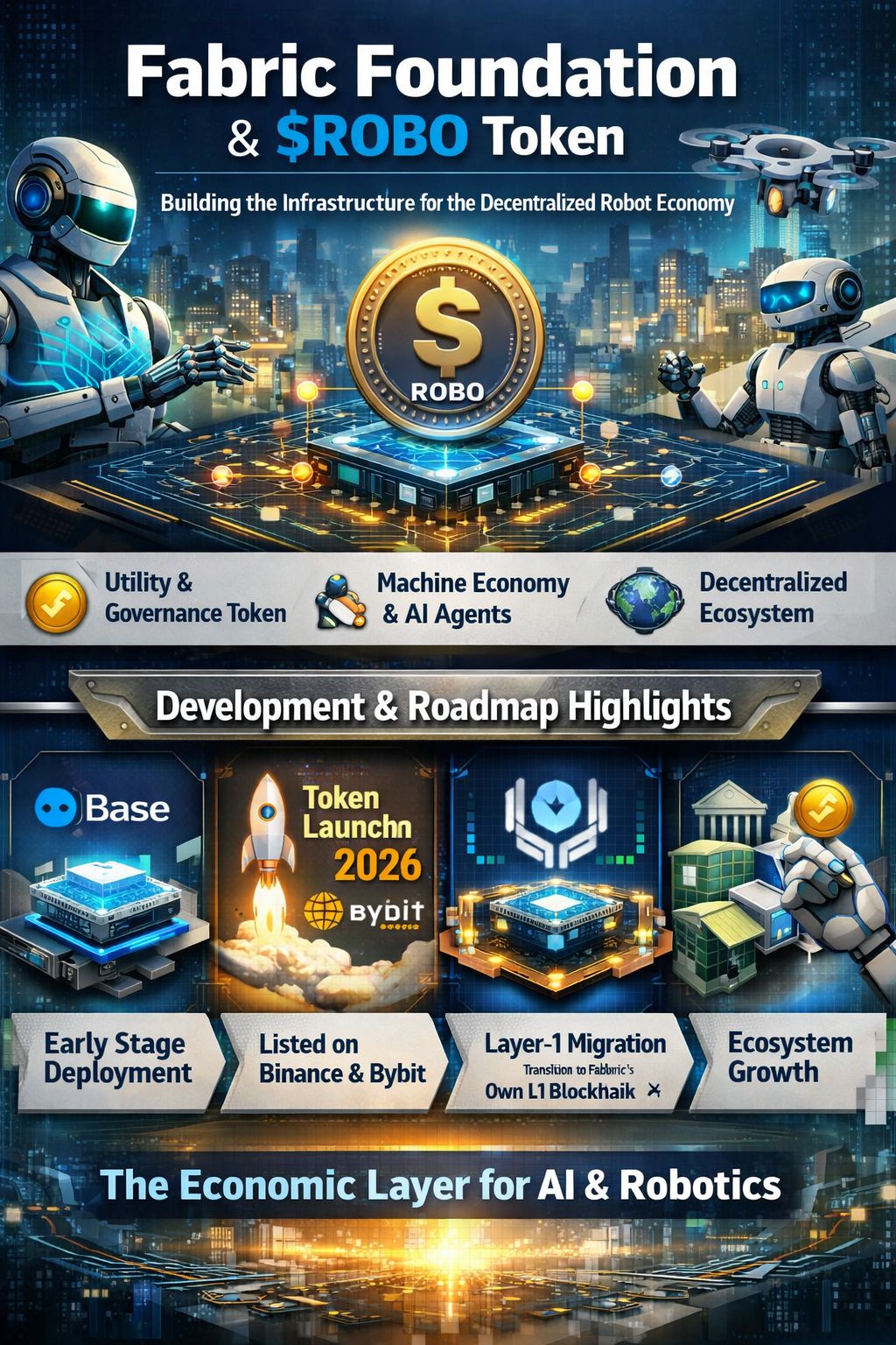$ROBO Fabric Foundation isn’t just another blockchain token project — it aims to build the underlying infrastructure for a decentralized “robot economy”, where autonomous machines and AI agents can transact, coordinate, and participate in global economic systems in an open, verifiable way. �