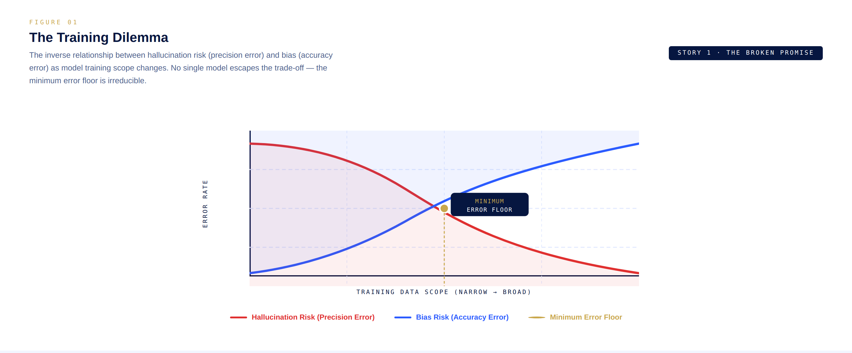 Regardez ça, voici un diagramme à double axe montrant la relation inverse entre le taux d'hallucination et le biais alors que l'étendue de la formation du modèle change le dilemme de formation.