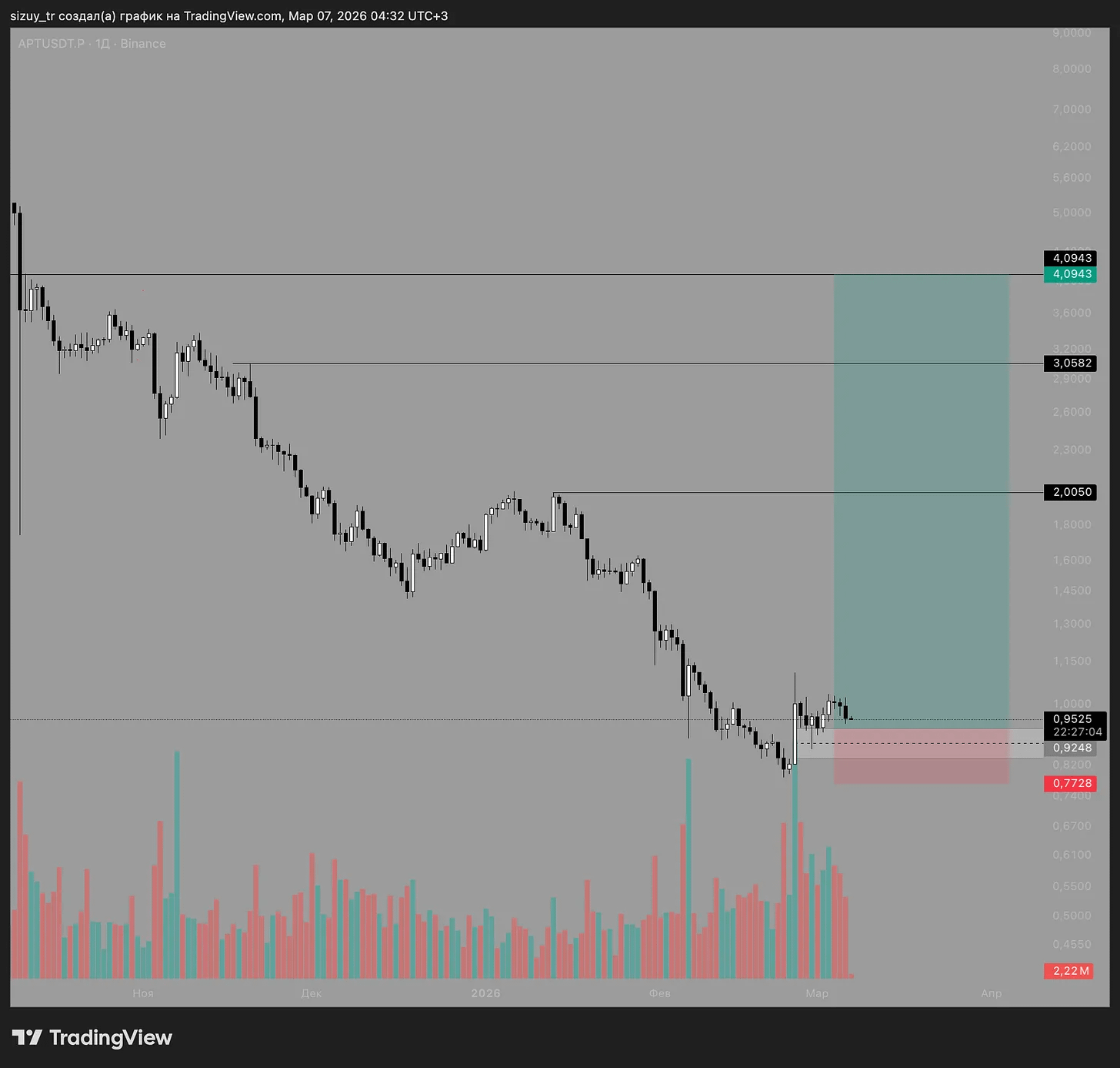 Аптос сьогодні, я б назвав - сильний проект, який вже своє відпадав,але як нам відомо ДНА немає, тому він і в категорії HIGH RISK