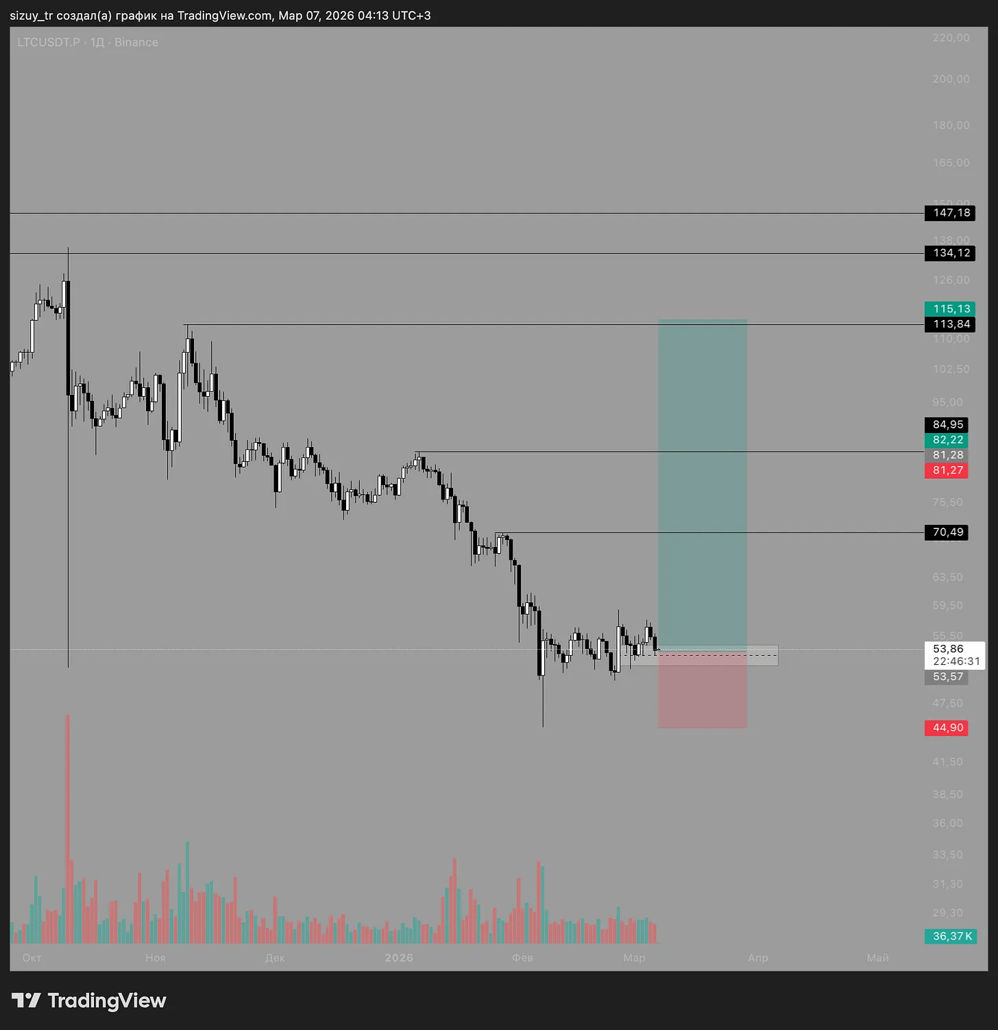 LTC - це та монета на споті, яка на бичачому ринку, на мою думку, х10 вже не покаже, хоча є й такі віруючі в “розривний альтсезон”. Це такий собі скромний альткоїн, який навіть на такому падаючому ринку, якщо дивитись на 1W графік знаходиться в так званому “боковику”