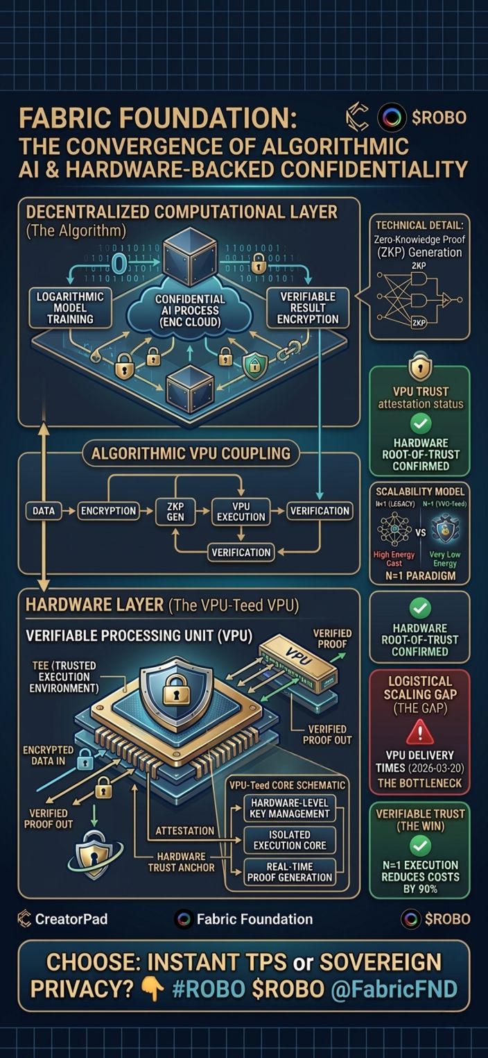 Sovereign Privacy: While projects like Bittensor or NEAR attempt to integrate AI, they still face a "Trust Gap." In Fabric, data is processed within a technically isolated environment. The network confirms the result's validity without ever seeing the raw data. This is the "Confidential Computing" required by banks and hospitals—something 99% of crypto projects currently lack. The Cost Paradigm (N=1): Other networks require thousands of nodes to reach consensus. With Fabric’s hardware-backed proof, a single node can provide a mathematically tamper-proof result, slashing costs by a staggering margin.
