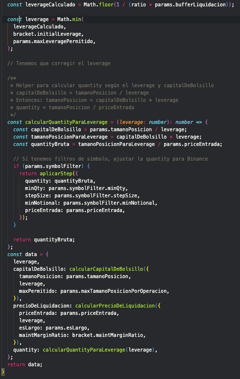 Foto 2 de la función calcularLeverage
