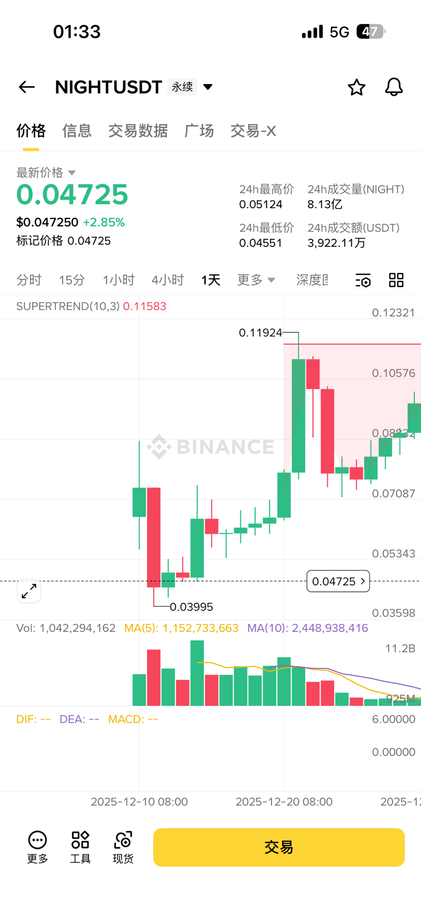 alpha30万份空投,人均90u的充值奖励、200u的交易赛奖励,这只是币安一家的量,按照币圈的惯例,这么庞大的空投抛压,开盘必然是断崖式暴跌。但 NIGHT 上线不仅没有出现“互割互砸”,反而走出了强悍的拉盘独立行情。拉盘连续10天,项目方不仅护盘,更是直接把价格拉到了让散户能够从容变现、舒服落袋的高度。