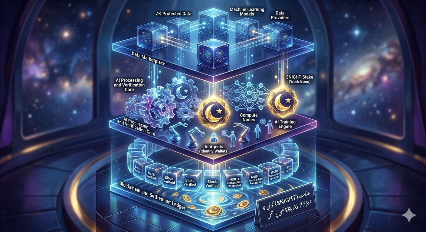Khulasa ye ke Midnight aik aisi maeeshat banata hai jahan AI machines be-ghair kisi markazi authority (Central Bank ya Company) ke apas mein secure tareeqe se kaam aur lain dain kar sakti hain. Is poore nizam ki bunyad $NIGHT coin ki transparency aur automation hai.#night