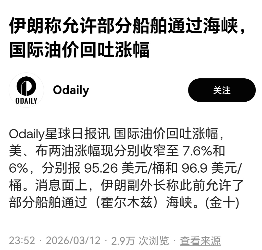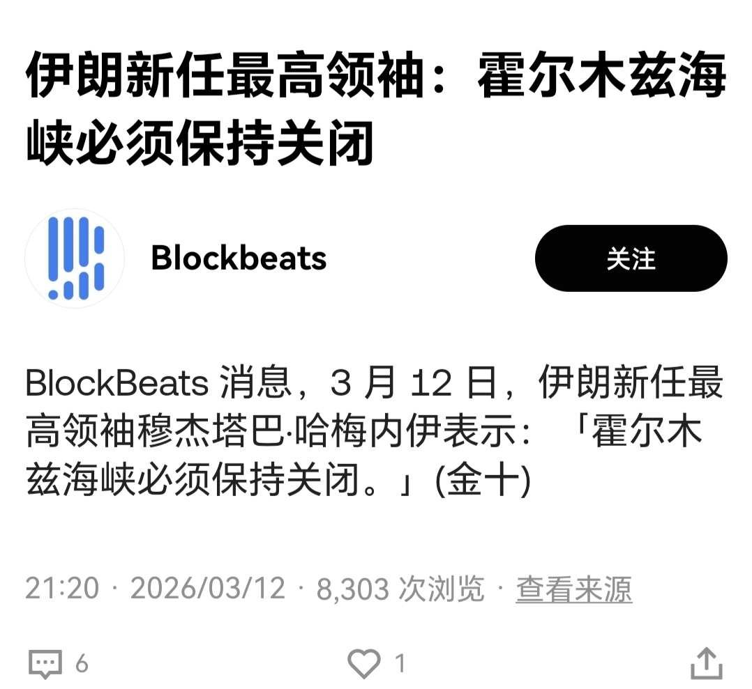 自从穆杰塔巴哈梅内伊成为伊朗最高领袖以后,老山发现这小子在走川普的路线了,把控舆论,前脚说彻底封锁霍尔木兹海峡,等待市场陷入下跌过后又出来辟谣称允许部分船只通过,这和川普的性格超级像,前脚发后脚出来辟谣,看样子没少看川普发的文,特别这个新领袖也持有大量加密货币,据说美伊刚爆发的时候伊朗就购买了大量加密货币,特别前几天美国那边又要调查币安和伊朗的资金往来,这小子舆论也玩的明明白白!