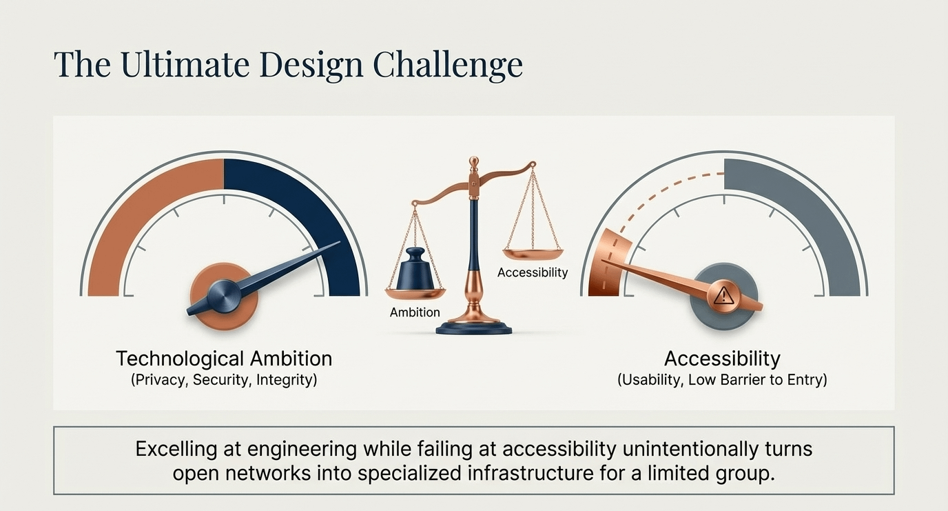 Il pourrait s'agir d'apprendre à créer des systèmes puissants qui restent compréhensibles, accessibles et utilisables pour les personnes qui n'ont pas déjà de grandes quantités de crypto ou d'expertise technique.