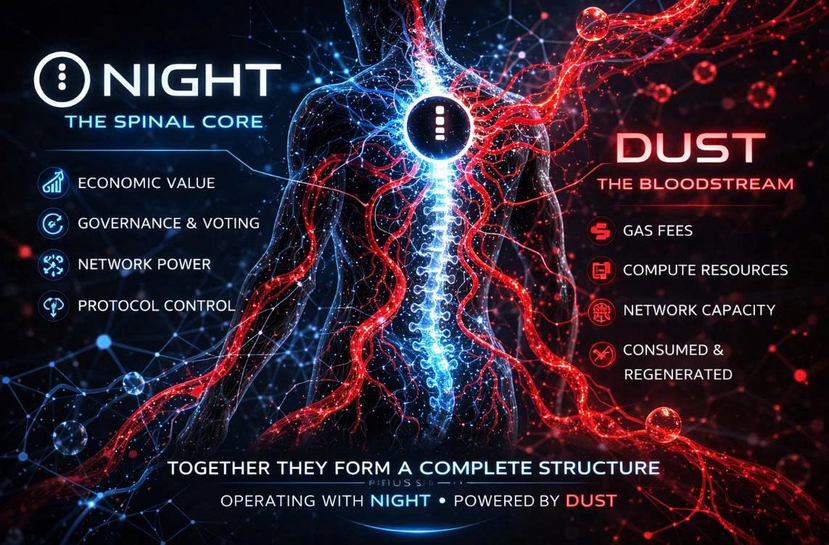 $NIGHT is the native token and governance token of @MidnightNetwork The right to create network resources: as mentioned above, Night is still the "spinal marrow" of the main structure, activating this mechanism means that just by holding NIGHT, the system automatically creates DUST "blood" similar to how a human body operates. The second thing I found is that NIGHT is used to: vote proposal, participate in network governance and can also decide protocol changes. In addition, Night allows Cardano stake pool operators to participate in operating the network and earn rewards in NIGHT