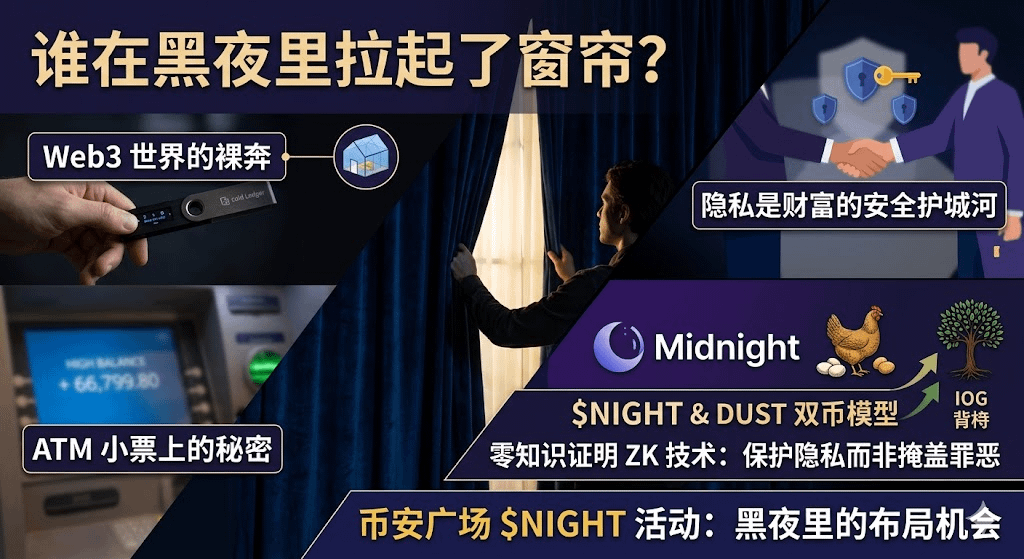 $NIGHT (Midnight) 做的,其实就是给这个疯狂、透明、焦虑的市场,拉上了一层厚厚的、带有温度的窗帘。它让我们可以放心地在黑夜里交换价值,而不必担心身后有一双窥视的眼睛。