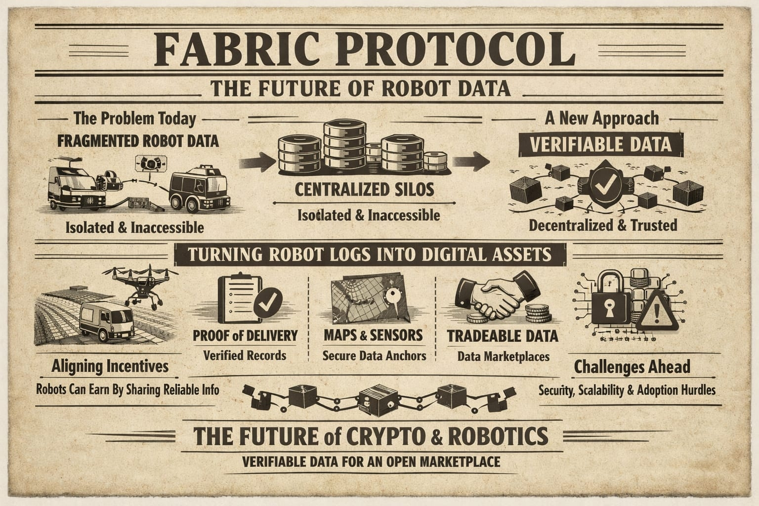 Robotics is drowning in data these days. Autonomous vehicles, warehouse bots, drones all churning out endless streams: telemetry, sensor readings, environmental stats, performance logs. Yet most of these machines stash their records in tightly controlled, centralized silos. It’s a glaring problem. Robot-generated data holds huge value, but right now, it’s mostly inaccessible, hard to verify, and nearly impossible to trade between organizations. Fabric Protocol flips the script. Rather than treating this info as ordinary robot logs, it sees each dataset as a verifiable digital asset, ready to flow through decentralized networks.