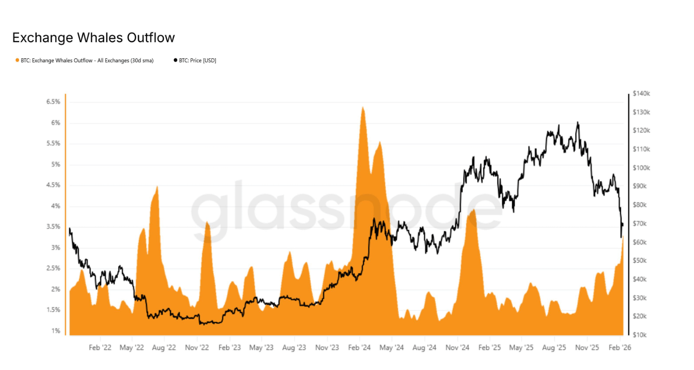 Sementara investor ritel berhati-hati, dompet yang memegang antara 10,000 hingga 100,000 BTC telah membeli lebih dari 70,000 BTC sejak awal bulan, setara dengan sekitar 4.6 miliar USD. Pada saat yang sama, jumlah Bitcoin yang ditarik dari bursa ke dompet besar juga meningkat.