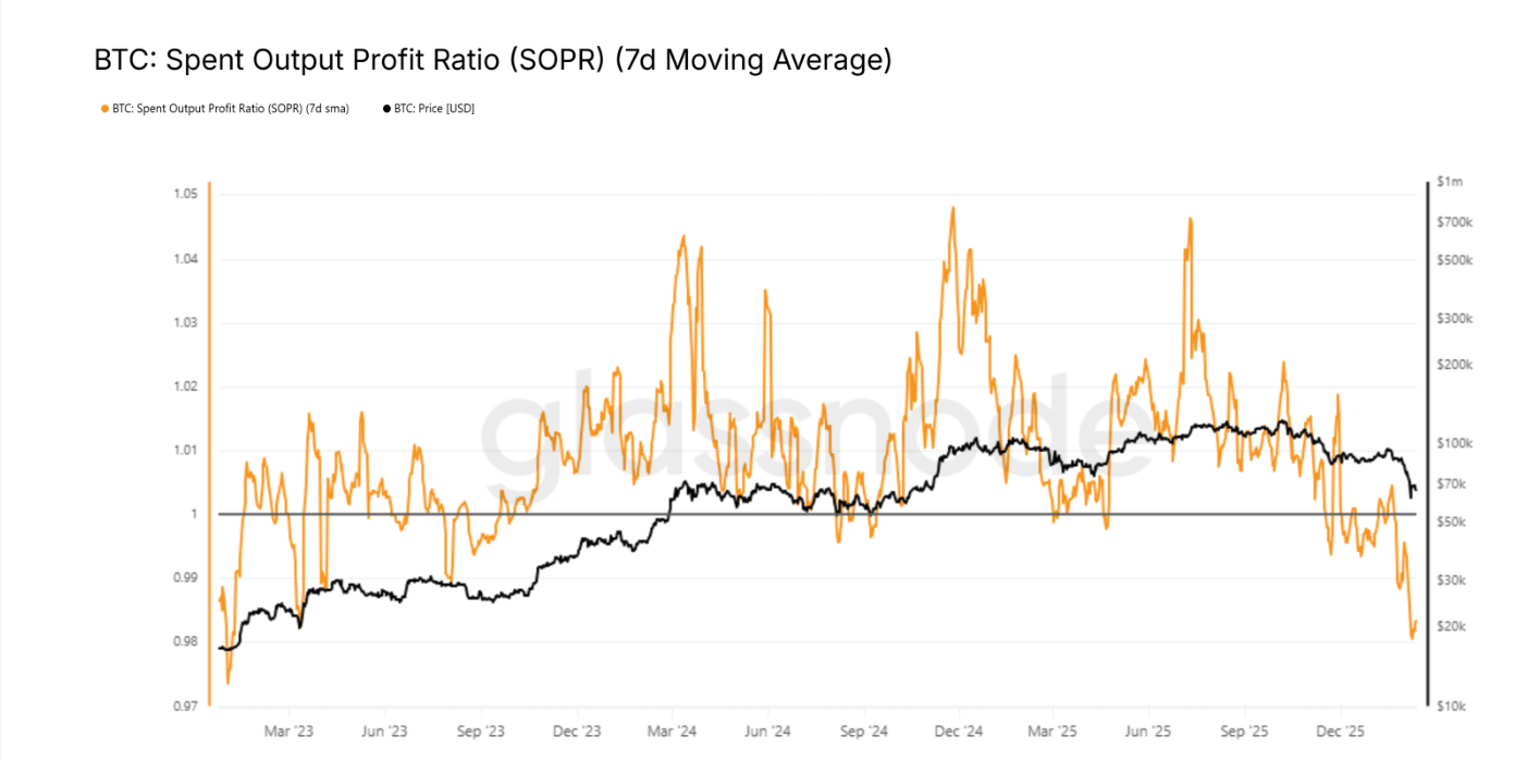 Indikator Spent Output Profit Ratio (SOPR) saat ini berfluktuasi di sekitar level 1, bahkan ada waktu ketika meluncur di bawah level ini. Itu menunjukkan banyak investor menjual pada titik impas atau menerima kerugian.