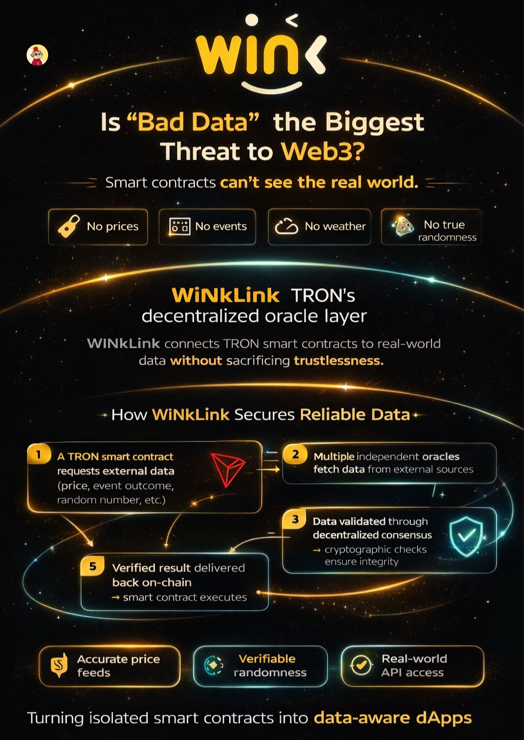 WINkLink is building that foundation for TRON, turning smart contracts from isolated code into data-aware applications.
