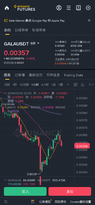 $GALA 1H级别正处于关键均线EMA20(0.0036)附近震荡,多空争夺激烈。4H级别虽仍处于下降通道,但最新一根4H K线收阳,显示下方买盘支撑。当前价格下跌但持仓量稳定,并非主力出货,更像是多头爆仓后的洗盘,为变盘蓄力。