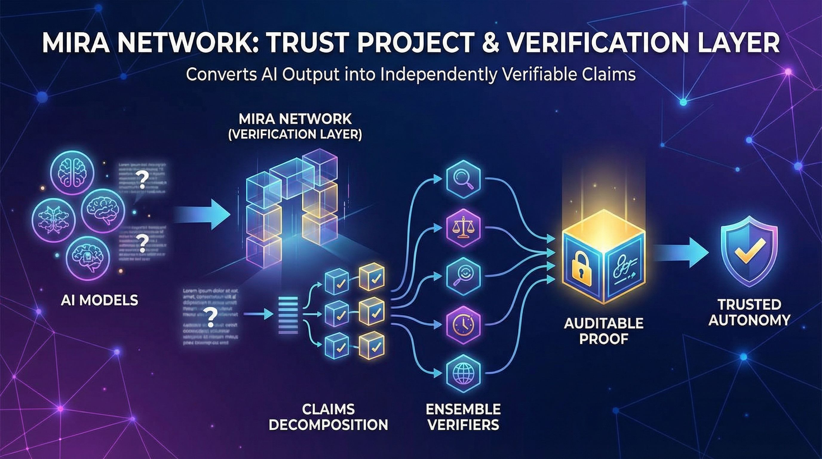 Ketika sebuah model membuat sebuah paragraf, ia sering kali menggabungkan berbagai macam klaim. Beberapa bersifat faktual. Beberapa disimpulkan. Beberapa bergantung pada definisi. Beberapa bergantung pada waktu. Beberapa bergantung pada lokasi. Metode Mira adalah memisahkan paragraf tersebut menjadi bagian-bagian yang lebih kecil yang dapat diverifikasi secara independen, dan kemudian mengirimkan bagian-bagian tersebut kepada verifikator independen. Tujuannya bukan untuk membuat bahasa menjadi indah. Idenya adalah untuk membuat bahasa dapat diuji.
