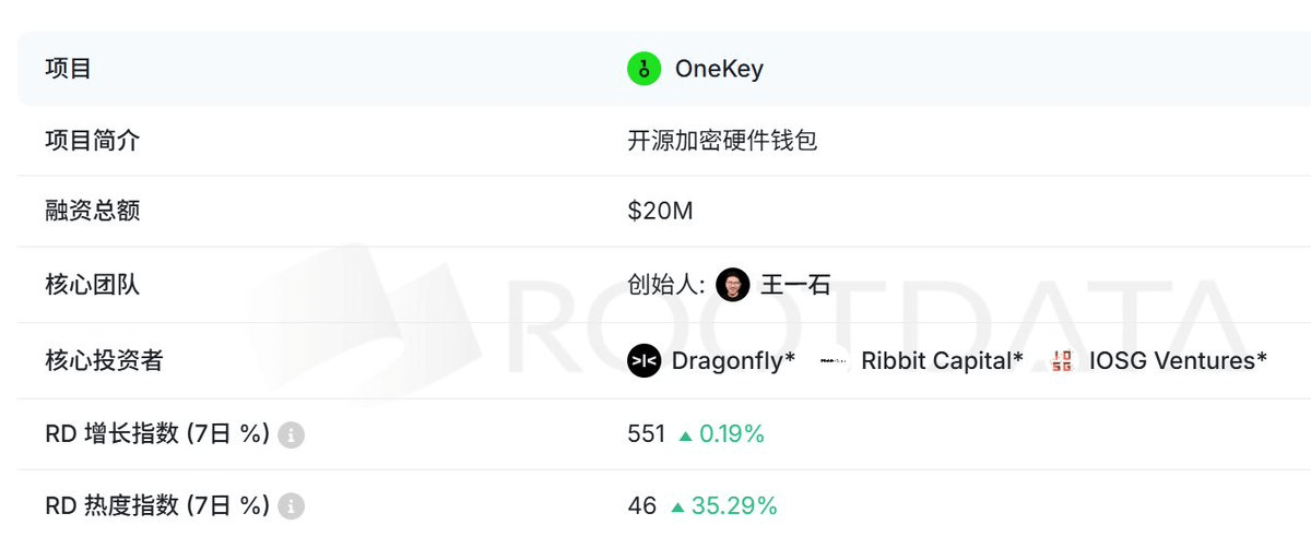 OneKey是一个开源加密硬件钱包,可以让用户安全、便捷地实现资产自托管。OneKey拥有完全开源的透明度和银行级的安全架构,获得了包括 Dragonfly、Ribbit Capital、Coinbase Ventures 以及YZi Labs在内的顶级加密货币投资机构的支持,总融资额达 2000 万美元,背景实力这一块母庸置疑。