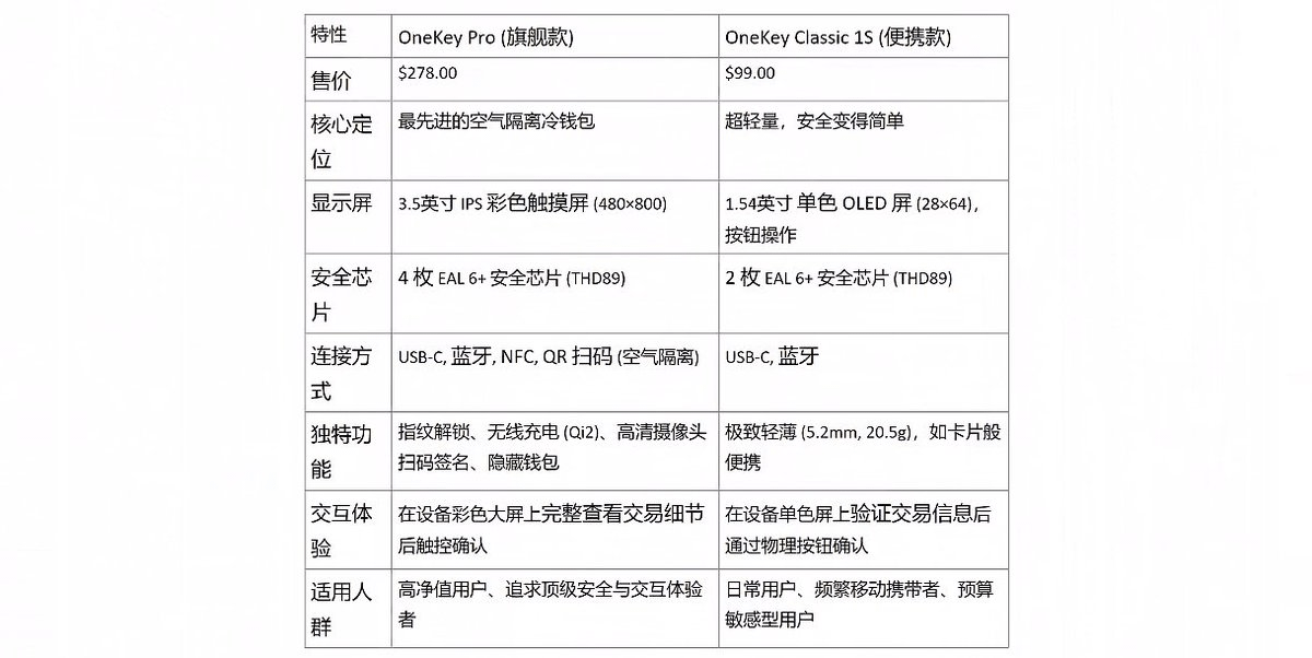 2. OneKey Classic 1S(99美元):如果你想要的是极致的便携和简单。信用卡大小,能直接塞进钱包夹层,就选这款。它没有彩色大屏,但核心的安全芯片和开源架构和Pro版是一模一样的。