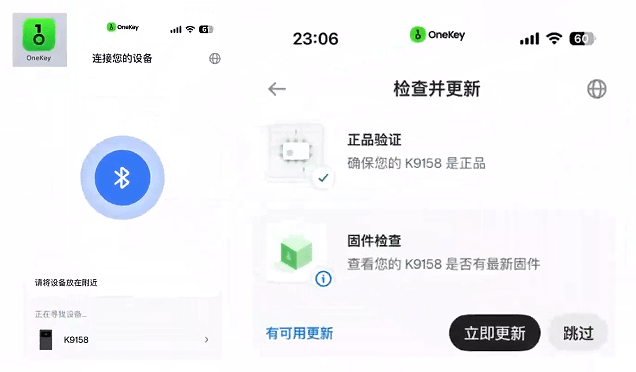 打开蓝牙与钱包进行配对,配对成功可以进行正品验证和固件更新检查。