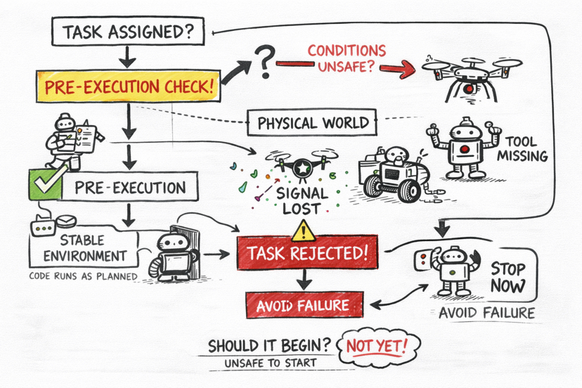 Traditional automation systems usually discover instability only after execution fails. Task rejection moves that signal earlier.