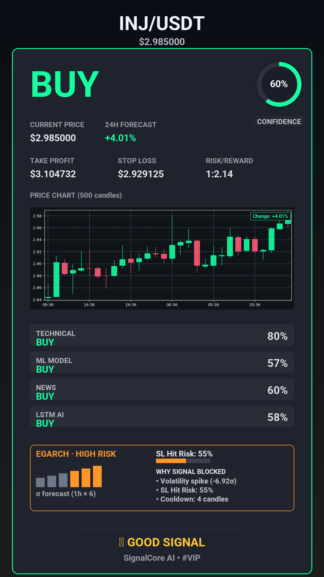 EGARCH HIGH RISK • Spike -6.9σ • Cooldown 4h