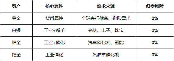 - 但供给结构不同:钯金高度集中在俄罗斯+南非(占80%),地缘风险大