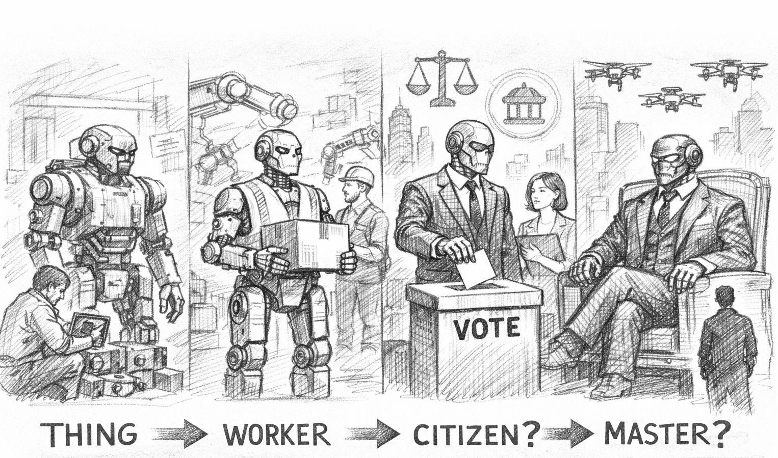 А далі логіка може зайти ще далі. Якщо система визнає роботів економічними агентами, чи не постане з часом питання політичних прав? Наприклад: