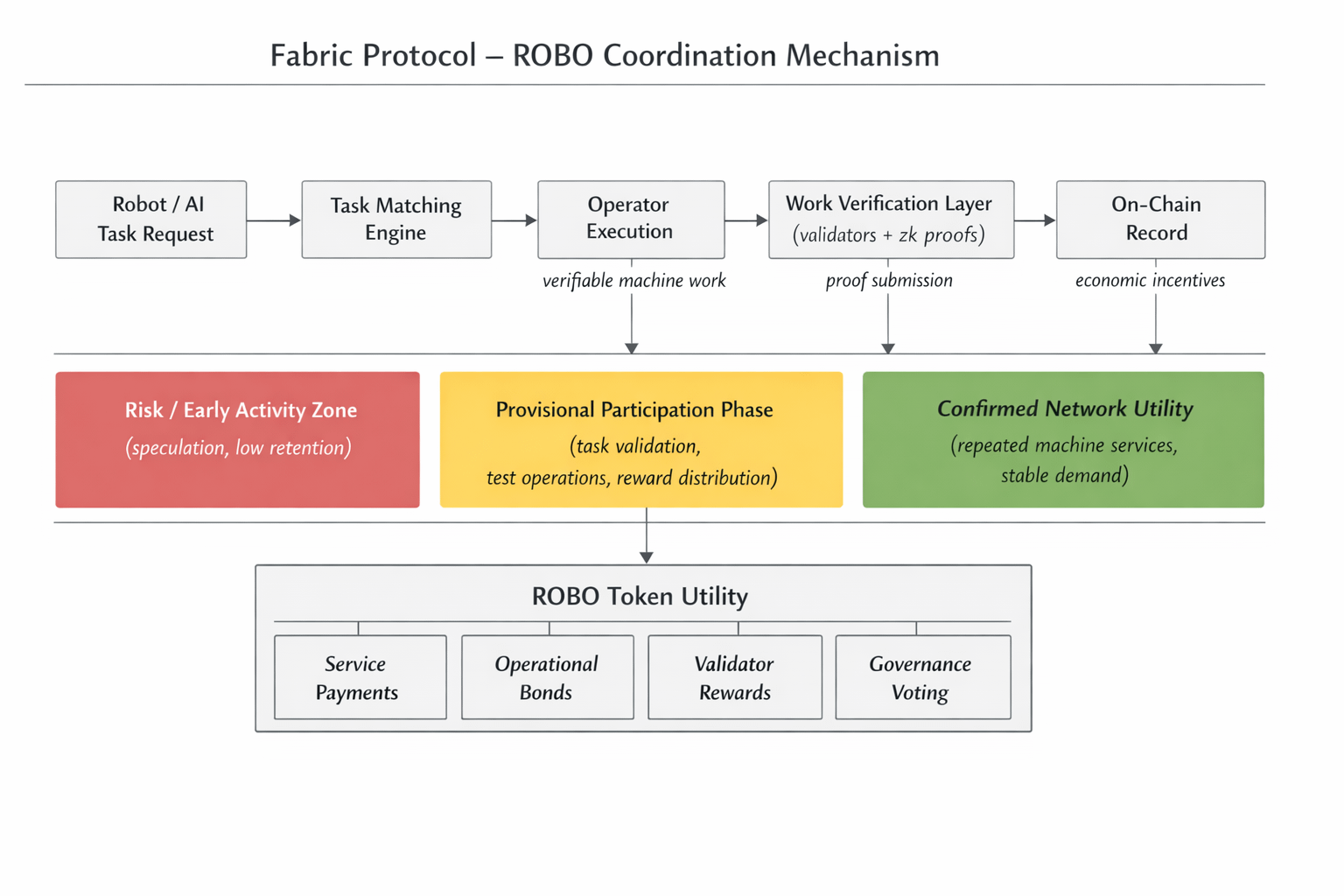 Beberapa siklus yang lalu saya mengikuti sebuah token yang terlihat sangat aktif. Volume perdagangan tinggi, media sosial ramai, dan grafik terus menarik trader baru. Sekilas semuanya terlihat kuat. Tapi ketika saya melihat lebih dalam, ada sesuatu yang hilang—sebagian besar dompet tidak bertahan lama, dan penggunaan yang nyata tipis. Aktivitasnya sebagian besar adalah perdagangan cepat daripada partisipasi yang bertahan. Pengalaman itu adalah mengapa ROBO terasa sulit untuk dibaca hari ini. Ide di baliknya lebih besar daripada banyak token AI, tetapi itu juga membuatnya lebih sulit untuk menilai dari mana nilai sebenarnya akan datang. ROBO mendukung Fabric Protocol, sebuah proyek yang fokus pada infrastruktur untuk AI dan robotika. Alih-alih membangun aplikasi gaya chatbot lainnya dengan token, protokol ini dirancang untuk mendukung koordinasi antara sistem AI dan robot dunia nyata.