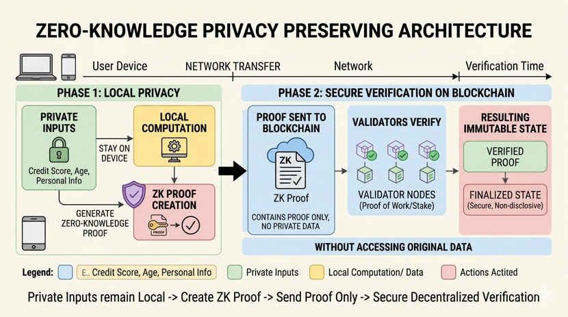 Imagine an identity verification system built for financial services. A user must prove they are above a certain age, reside in a specific jurisdiction, and pass a regulatory screening process. Traditional blockchain infrastructure struggles with this scenario because the verification data contains personal information that cannot simply be exposed to every validator node.