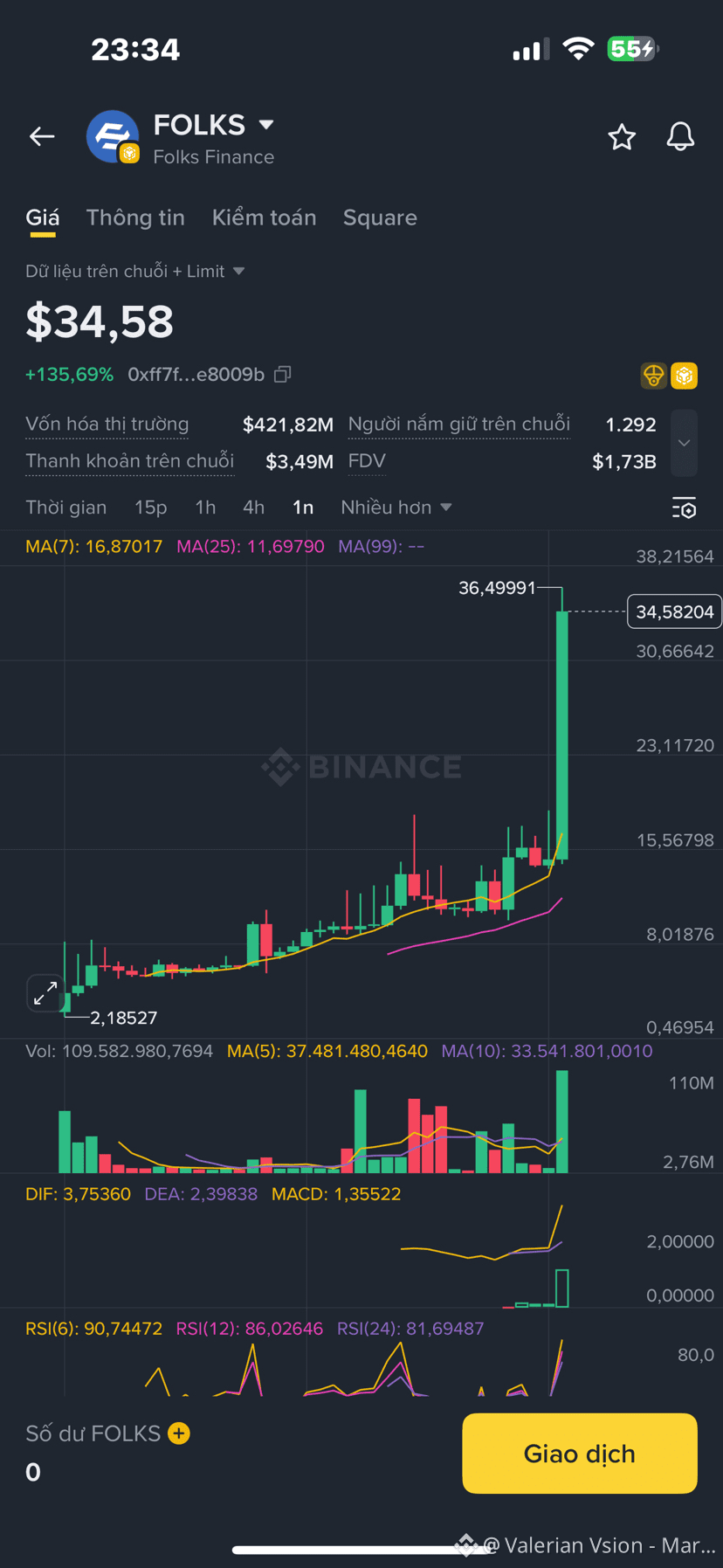 $FOLKS Tăng siêu mạnh kể từ ngày Airdrop Alpha từ giá trị 1 coin chỉ chọn vẹn 2 USDT nay đã bùng nổ dòng tiền rót vào cho 1 hệ Coin dự án giao thức tài chính phi tập trung, khiến tăng vững chọc trời với giá 35 USDT cho 1 đồng $FOLKS