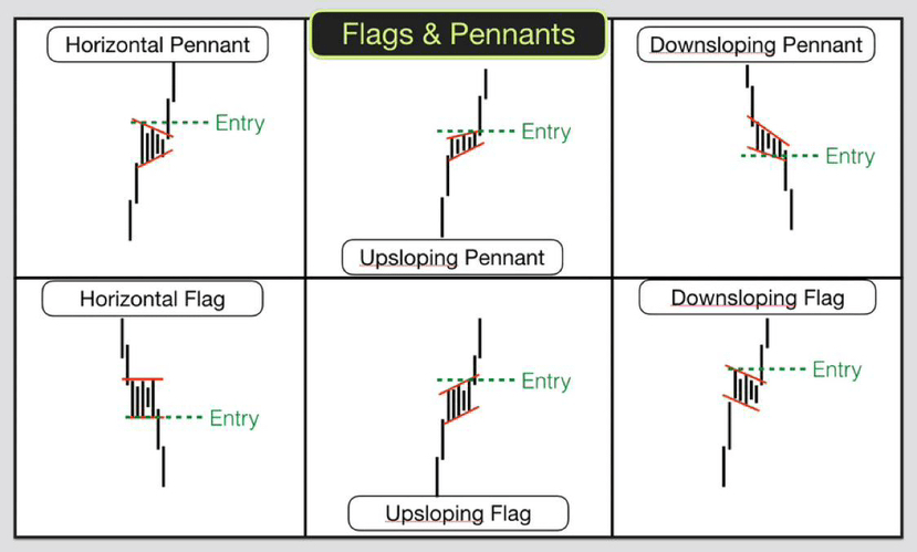 ❖ Bandiere e pennoni rialzisti o ribassisti sono modelli a breve termine nei grafici delle criptovalute