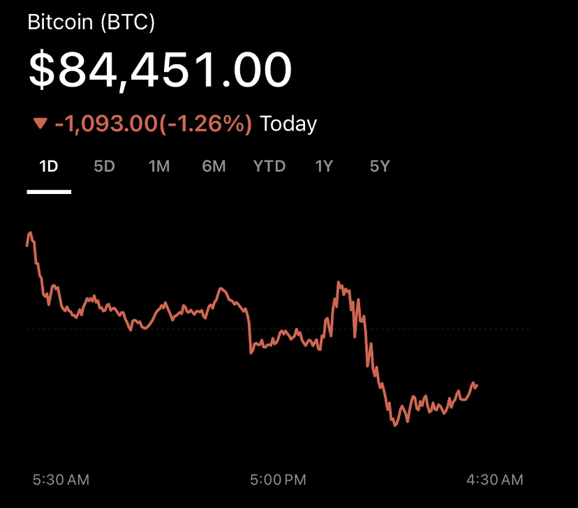 Dopo l'annuncio, i mercati delle criptovalute hanno subito fluttuazioni. Ad esempio, il Bitcoin (BTC) è attualmente quotato a $84,451.00, riflettendo una diminuzione di circa l'1.28% rispetto alla chiusura precedente.