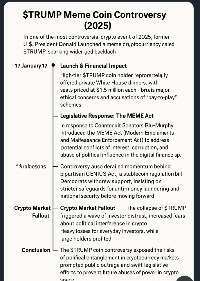 #TRUMPCoin #MEMEAct #CryptoScandal2025 #TrumpCrypto #CryptoNews #CryptoRegulation #MemeCoinCrash #BlockchainPolitics #CryptoControversy #GENIUSAct #CryptoBan #CryptoEthics #PoliticalCrypto #TrumpInauguration #CryptoMarketCrash