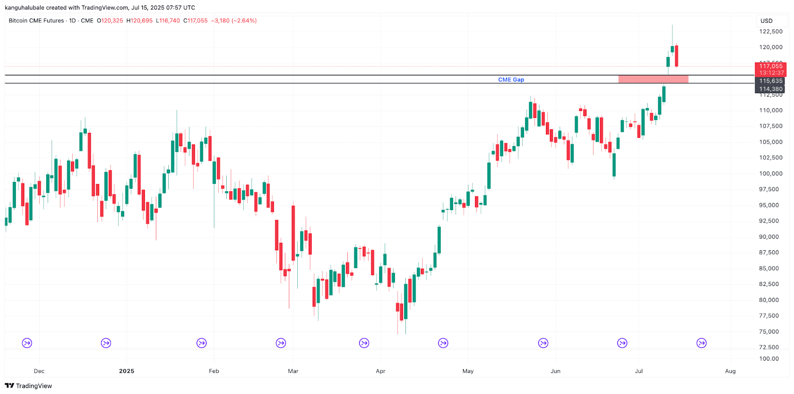 Il Bitcoin potrebbe scendere per riempire il gap CME sotto $115.000.