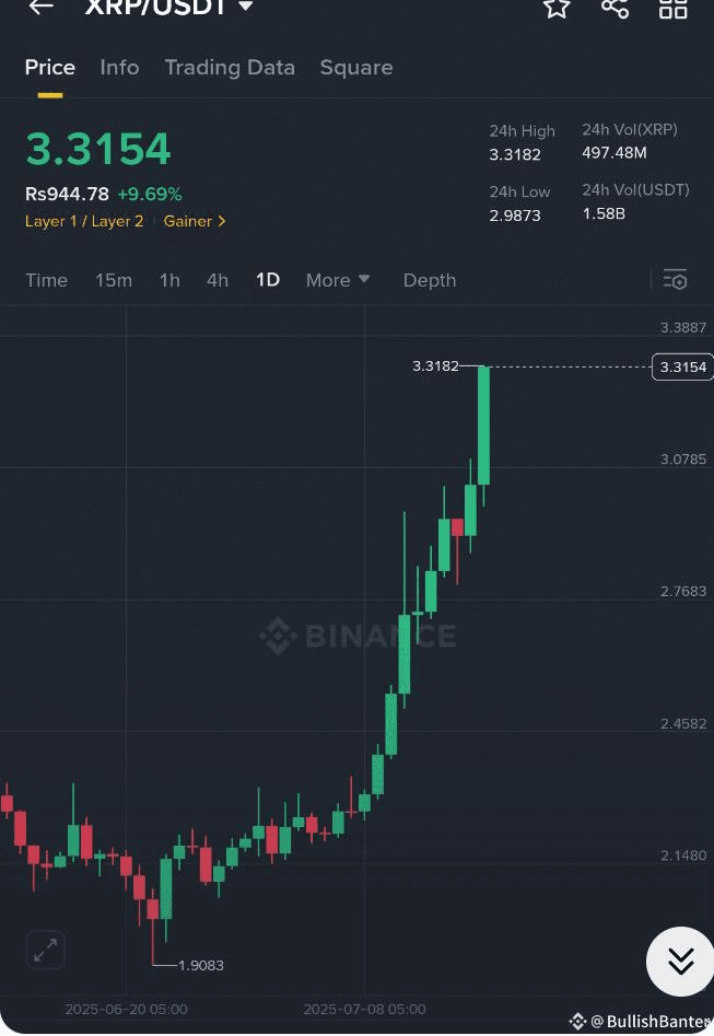 Un'altra chiamata corretta — e un altro profitto! Come ho già menzionato in precedenza, il precedente ATH di XRP sarà presto sfidato... e oggi sta accadendo proprio questo. XRP ha avuto un potente breakout fino a $3.3182 e al momento non ci sono segni di rallentamento.