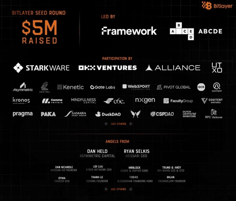 Bitlayer riceve supporto da numerosi investitori forti, tra cui OKX Ventures, StarkWare, Alliance, UTXO, Asymmetric, Kesrel, Kenetic, Gate Labs, Web3Port Foundation, Pivot Global, GCR, Quotient, Kronos Ventures, Comma Ventures, Mindfulness Capital, NxGen, Faculty Group e molti altri. Questa ampia rete di investitori dimostra l'affidabilità e il potenziale del progetto.