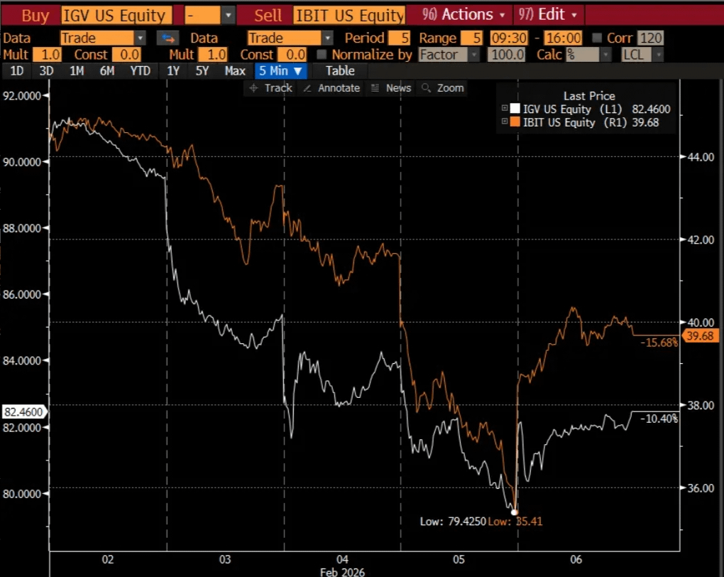 Il fattore scatenante di questa fase di declino è stata la diffusa correzione di asset rischiosi tradizionali, come i titoli software e tecnologici. Gli hedge fund multistrategia, fortemente investiti in azioni, oro e criptovalute in diverse classi di attività, hanno attivato i loro meccanismi automatici di mitigazione del rischio quando le correlazioni tra gli asset sono diventate anormalmente elevate. Ciò ha comportato che Bitcoin, come parte del loro "paniere di rischio", sia stato venduto in modo indiscriminato e programmatico.