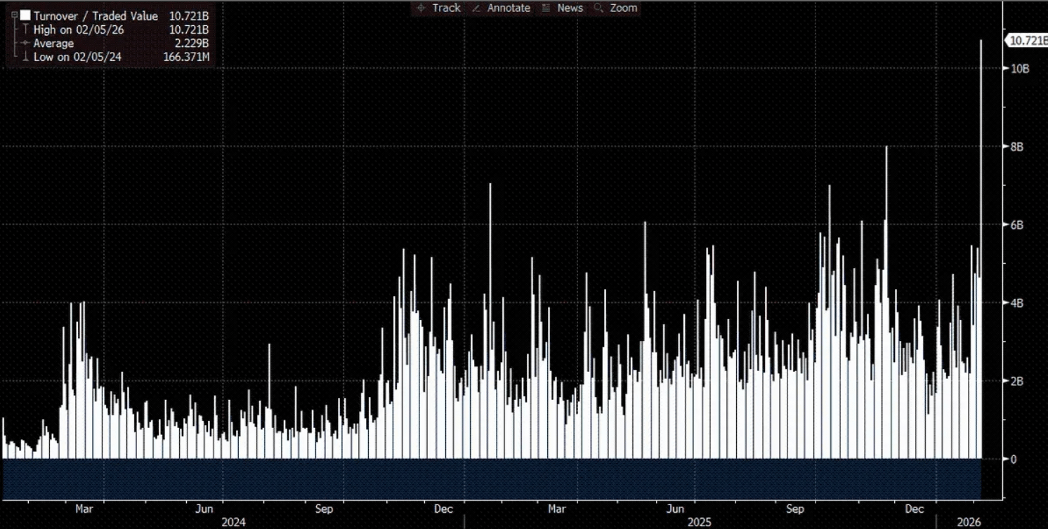 La chiave sta nel successivo percorso di trasmissione. Il calo del mercato ha spinto il prezzo di Bitcoin in una zona sensibile in cui i market maker delle opzioni hanno dovuto coprire le loro posizioni corte Gamma. In parole povere, il calo del prezzo ha costretto i market maker a vendere più Bitcoin spot per coprirsi dal rischio, amplificando la pressione di vendita e creando un circolo vizioso di "declino → vendita di copertura → declino accelerato". Contemporaneamente, centinaia di miliardi di dollari in posizioni ad alta leva finanziaria nel mercato crypto nativo sono stati liquidati in una reazione a catena, diventando la goccia che ha fatto traboccare il vaso. La prova più ironica è che nel giorno delle vendite più intense, l'ETF BlackRock IBIT ha registrato un volume di scambi record di decine di miliardi di dollari e afflussi netti. Ciò indica che la forza principale dietro la svendita sono stati i derivati "cartacei" e le posizioni di copertura, piuttosto che un ritiro permanente dei fondi ETF.