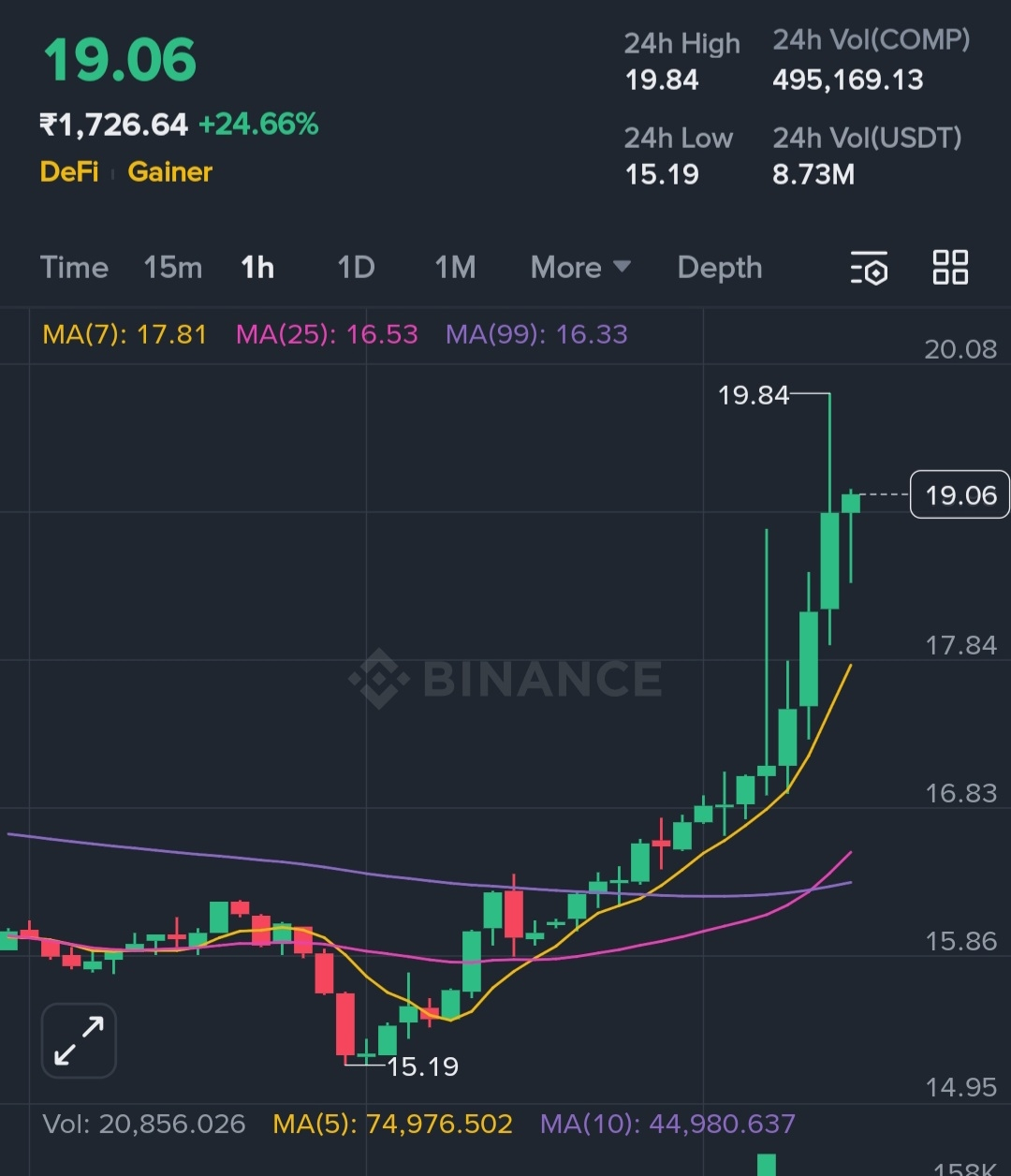 After a sharp recovery that pushed price into a clear short-term uptrend, $COMP is showing strong bullish momentum. The chart reflects aggressive buying pressure, with price trading well above key moving averages and forming consecutive higher highs and higher lows — a classic trend continuation structure. Volume expansion confirms real participation rather than a weak bounce, suggesting traders are actively positioning into the move. The RSI, on the other hand, is extremely high, indicating that the market is currently overextended in the near future. When momentum indicators reach such high levels, it frequently indicates that the rally is entering a cooling phase in which a temporary pullback or consolidation is beneficial to the sustainability of the trend. The recent move toward the $19–$20 resistance zone is significant because sellers may attempt to defend this area, which served as a supply region previously. During any retracement, price would strengthen the bullish structure and increase the likelihood of continuation if it can maintain above nearby support zones. Comp is still a well-known DeFi token that is connected to infrastructure for lending and borrowing, and renewed interest in the DeFi sector is contributing to the acceleration of similar assets. Market sentiment currently favors risk-on trading conditions, which often leads to fast upside moves followed by sideways stabilization rather than immediate reversals. Traders should pay close attention to volume behavior because strong selling volume during pullbacks could indicate short-term exhaustion while low volume during rallies could indicate healthy consolidation. Key support levels sit near the previous breakout region, and holding these zones will be important for maintaining bullish confidence. If momentum continues, upside continuation is still possible; however, chasing price after vertical candles carries a greater risk, particularly when indicators indicate overbought conditions. By allowing new buyers to enter at higher levels, a controlled pullback or range formation would actually improve the structure. Overall, COMP is showing strength in the bullish direction. However, it is at a crucial decision point where confirmation-based entries, risk management, and patience are more important than emotional trades driven by rapid price growth.$COMP