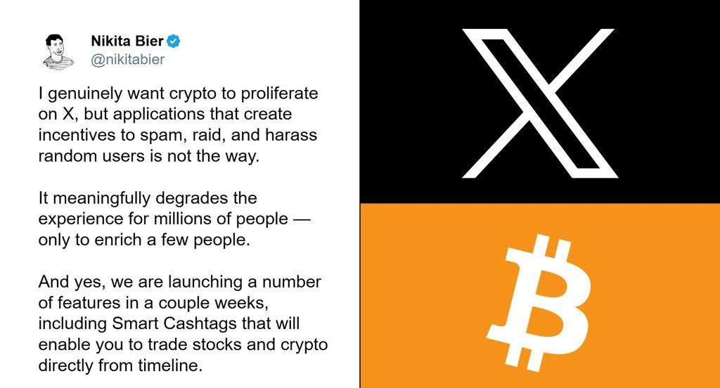 Nikita Bier, Product Head at X has announced launching of Smart Cashtags in couple weeks. The feature allows users to trade stocks and cryptocurrency directly from their timelines while addressing platform spam and harassment concerns. Replying one user he posted: