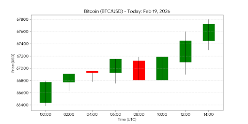 The chart below illustrates the hourly volatility for February 19, showing a steady "staircase" recovery from the morning lows.