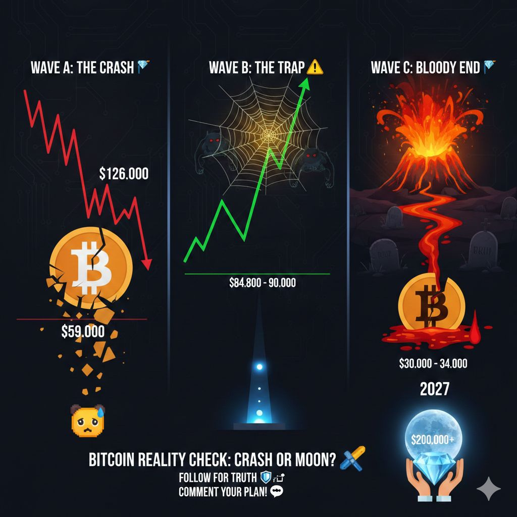 Wave C (La Fine Sanguinosa): Se non riusciamo a mantenere $90K, preparati allo scenario da incubo—Bitcoin diretto verso $30.000–$34.000. 🌋🩸