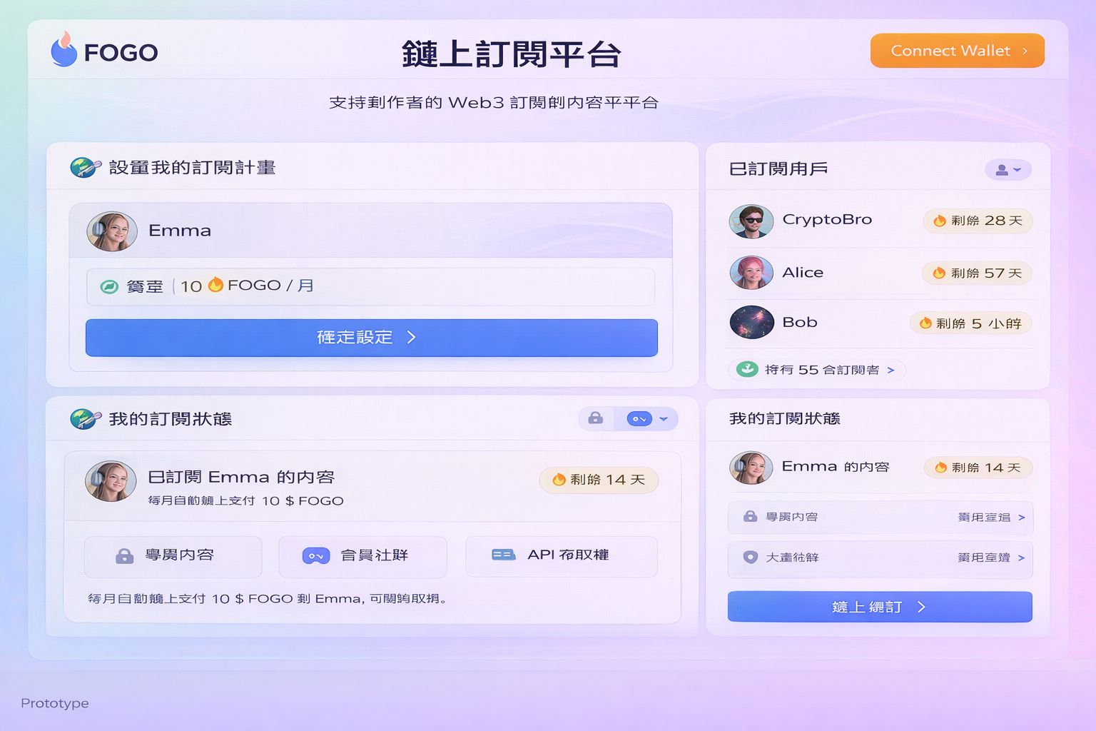 這次我在 Fogo 上實作一個「鏈上訂閱系統」Prototype,核心邏輯很簡單: