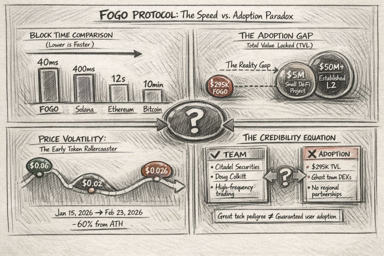 Fogo launched January 15th — yeah, like five weeks ago. It's a new blockchain that's basically trying to be Solana but faster. They took Solana's code (the SVM thing), slapped on Firedancer which is this high-performance tech from Jump Crypto, and tweaked it for speed. The whole selling point is 40-millisecond blocks. For context, Solana is around 400ms, Ethereum is... well, don't get me started.