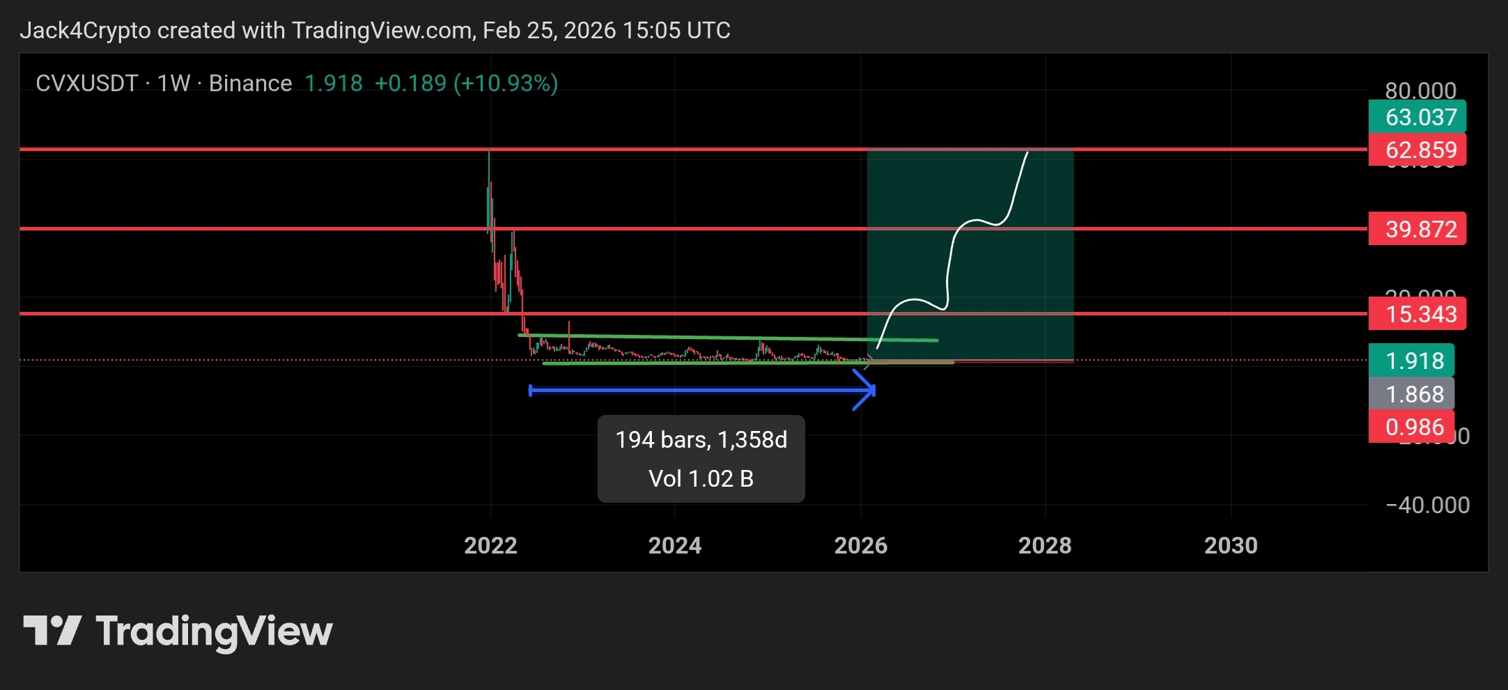 Questa è la zona in cui CVX entra nel vero markup, simile a molte altcoin che hanno rotto i pavimenti di diversi anni e non sono mai tornate indietro.
