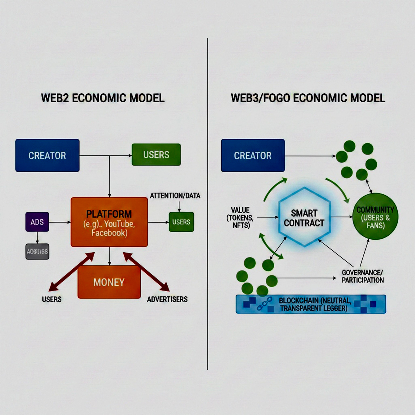 Fogo enables the shift from an attention economy to an ownership economy. In the legacy system, "value" is measured in likes and views—intangible metrics that benefit the platform. Fogo allows for the tokenization of reputation, influence, and creativity.