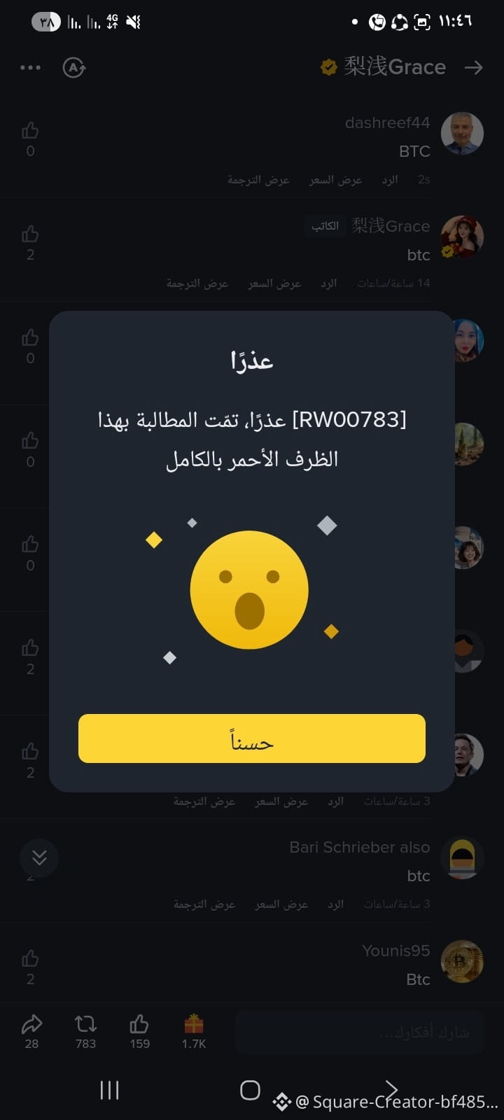 يا فريق بينانس، أرجوكم، انظروا إلى مشكلتي بعين الاعتبار. مشكلة RW00271 ليست مجرد كود عابر، بل هي سبب رئيسي في إحباط مستخدم وفيّ. أريد حلاً جذرياً، وليس ردوداً تلقائية. أريد أن أعرف سبب ظهور هذا الكود بالضبط، وما هي الخطوات الواضحة لإزالته نهائياً، حتى أتمكن مرة أخرى من المشاركة بكل حماس في مجتمعكم الرائع وفي الحملات القادمة.