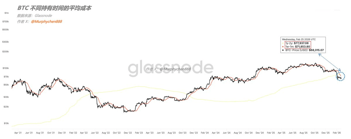 Dai dati passati, ogni volta che il sentimento del 'mercato orso' domina, i ritracciamenti del BTC tendono a concentrarsi attorno a questa linea. In parole semplici, durante un rimbalzo può superare questa linea, ma con il decongelamento delle posizioni, la pressione di vendita aumenta e tornerà indietro.